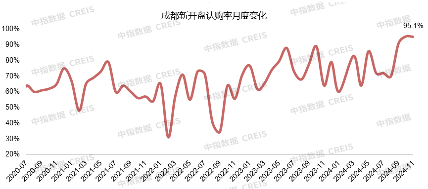 11月成都监测开盘套数约1247套,较上月增加近1000套,平均认购率约为95.1%。