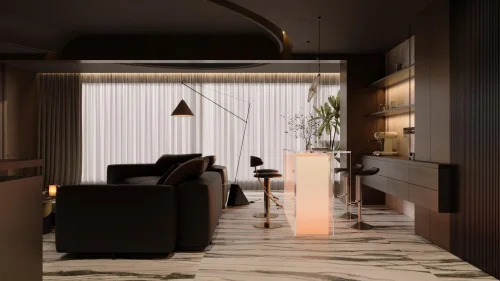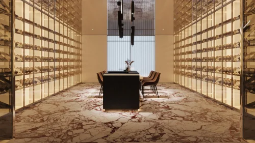在这一全新系列的璀璨舞台上,创新工艺“全息幻彩”犹如魔术师手中的魔杖,轻轻一挥,便赋予了石材纹理以生命与灵魂。那些丰富的石纹,不再是冷冰冰的图案堆砌,而是化作了情感的细腻笔触,每一抹色彩、每一道线条都蕴含着极致空间的情感美学。它们或如晨曦初照下的温柔呢喃,或如夕阳西沉时的壮丽诗篇,将空间的每一个角落都装点得如梦似幻。