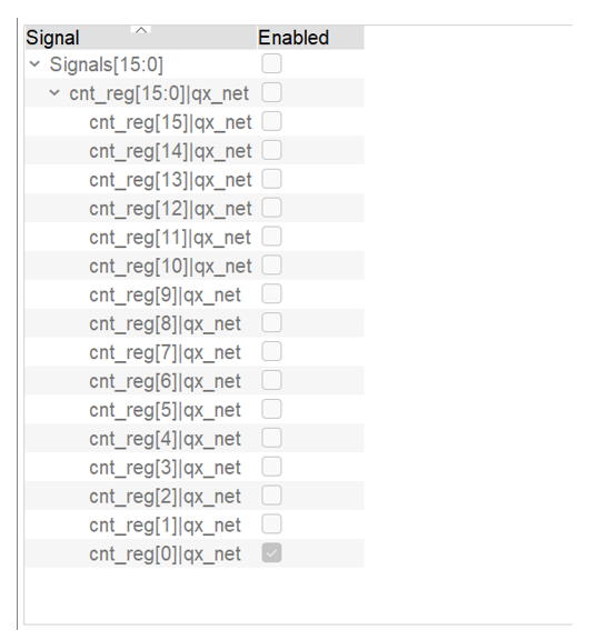边沿触发时,有且仅有一个信号可处于使能状态。使能信号将显示在 Enabled 列 Bus 信号名对应行。如图 4-6 所示。