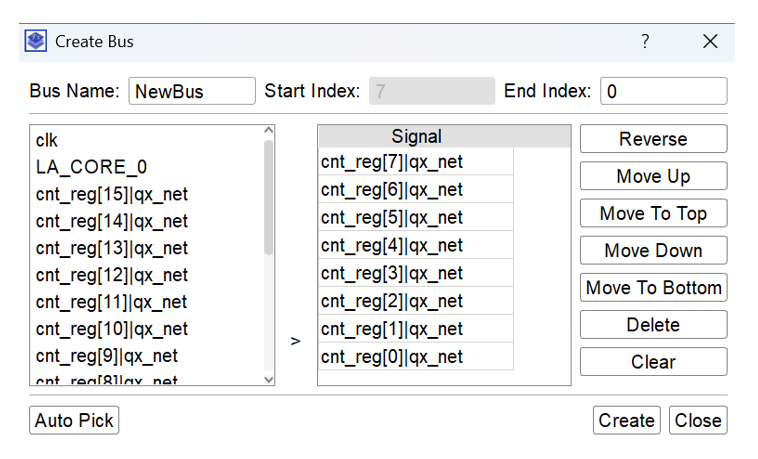 选择信号后,通过右键菜单 Create Bus (如图 5-7)打开 Create Bus 窗口(如图 5-8)。