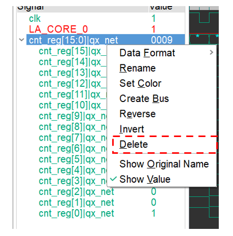 选择信号后,通过右键菜单 Delete,删除当前选择信号,如图 5-10。