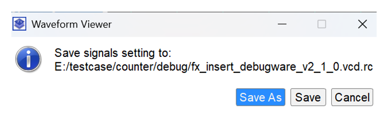在打开 VCD 或重新加载 VCD 文件,以及加载波形设置资源文件时,如果打开的 VCD 波形文件重新生成后与之前默认保存的波形设置文件(vcd.rc)不匹配,会弹出错误提示对话框。